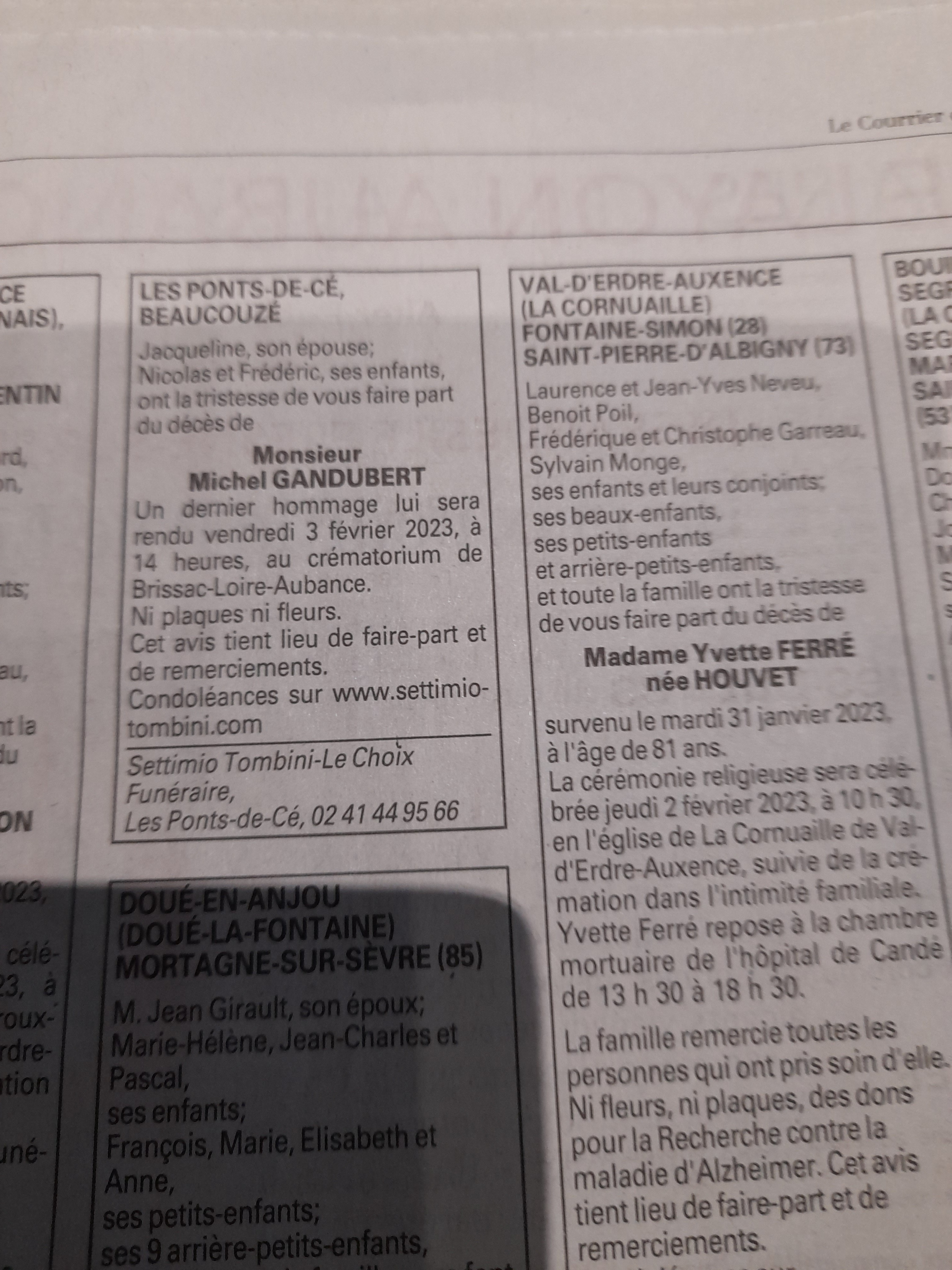 Nous vous faisons part du décès de Mr Michel Gandubert